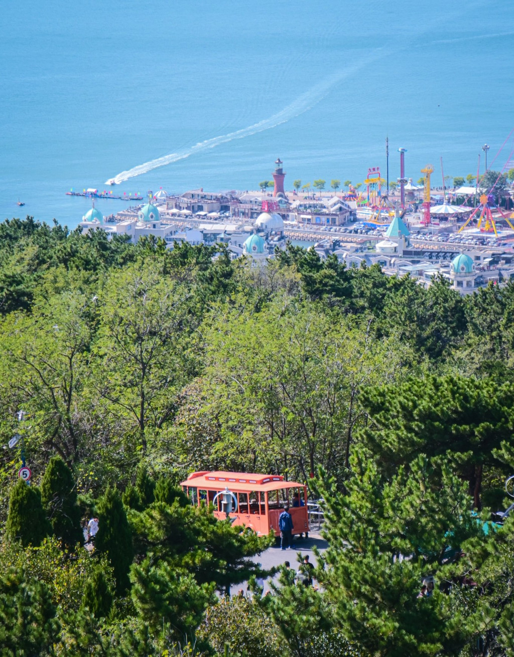 下一个景区是哪呢?当然是紧挨着棒棰岛的海之韵公园。海之韵,海之韵,顾名思义是与海有关的一个公园。海之韵公园很大,而且坡多,为了节省体力,我一入园就买了全程的摆渡车套票,得益于我是学生,全票只需要40元就可以拿下,比正常的票便宜一半,可以省下一顿饭的钱,真棒!
