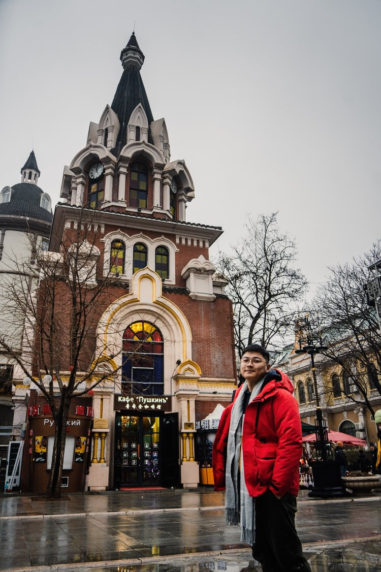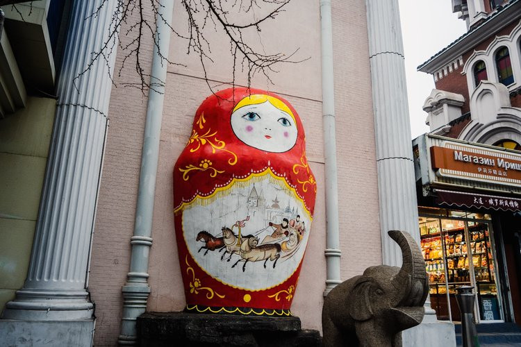 街道两旁林立着俄式建筑,街道上到处都是俄式风格的商店、餐厅和酒吧。五颜六色的洋葱头穹顶,蓝色的门窗,每一座建筑都各具特色,仿佛置身于俄罗斯的某个小镇。