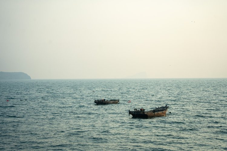 站在海滩边远眺可以看见多艘渔船在海上漂浮,为这片海景增添一点灵动。冬季的海风还是有些刺骨,湛蓝的海水、游荡的渔船让人仿佛置身于一幅浪漫的油画之中。