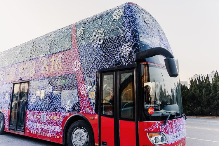 其实还有光影巴士的,也是使用彩灯包裹着双层巴士,在星海广场外环进行摆渡巡游,巡游时间为元旦假期至正月十五。