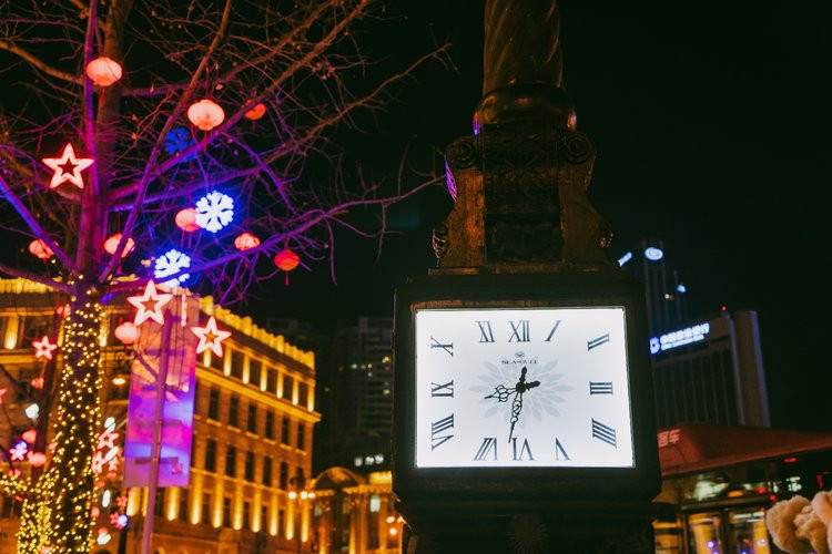 我们来到中山广场已是晚上。中山广场位于大连市中心,是城市的中心广场。周边灯火阑珊,街道上、建筑上、树木上都已经张灯结彩给你既好看又浓郁的新年气息,非常浪漫!
