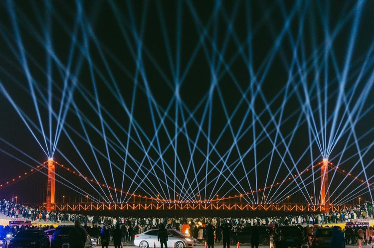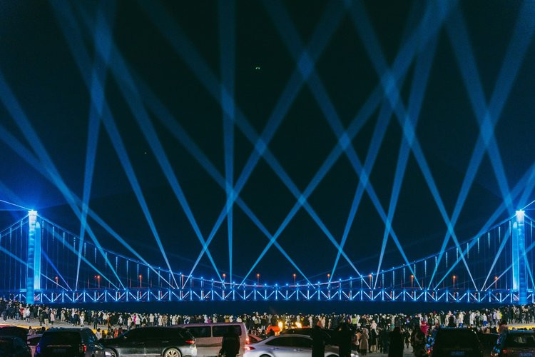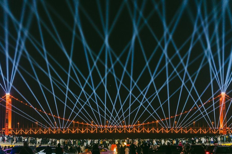 晚上,我们观看了东港跨年灯光秀。东港跨年灯光秀是每年大连跨年夜的重头戏。