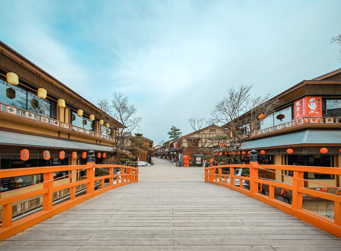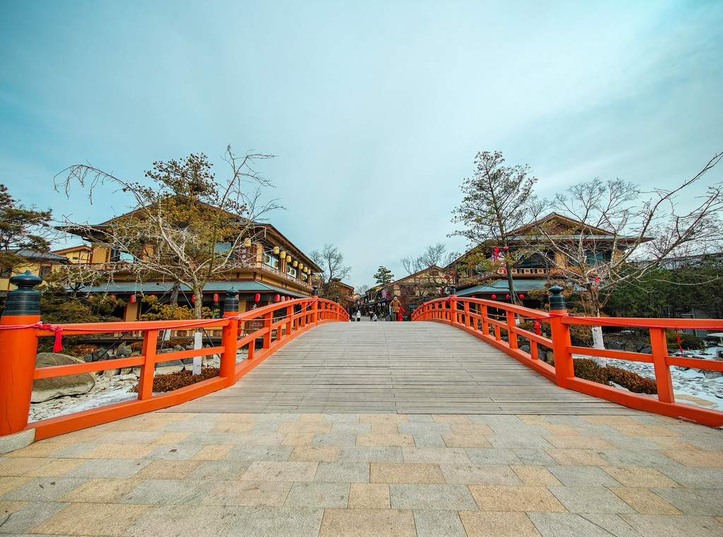 金石万巷是大连金石滩一带著名的商业街,吃喝玩乐样样齐全,还有一些专卖俄罗斯、韩国等各国产品的特色小店。进入商业的桥上拍照自带电影感,走到巷口可以拍出商业街的弧度很好看。