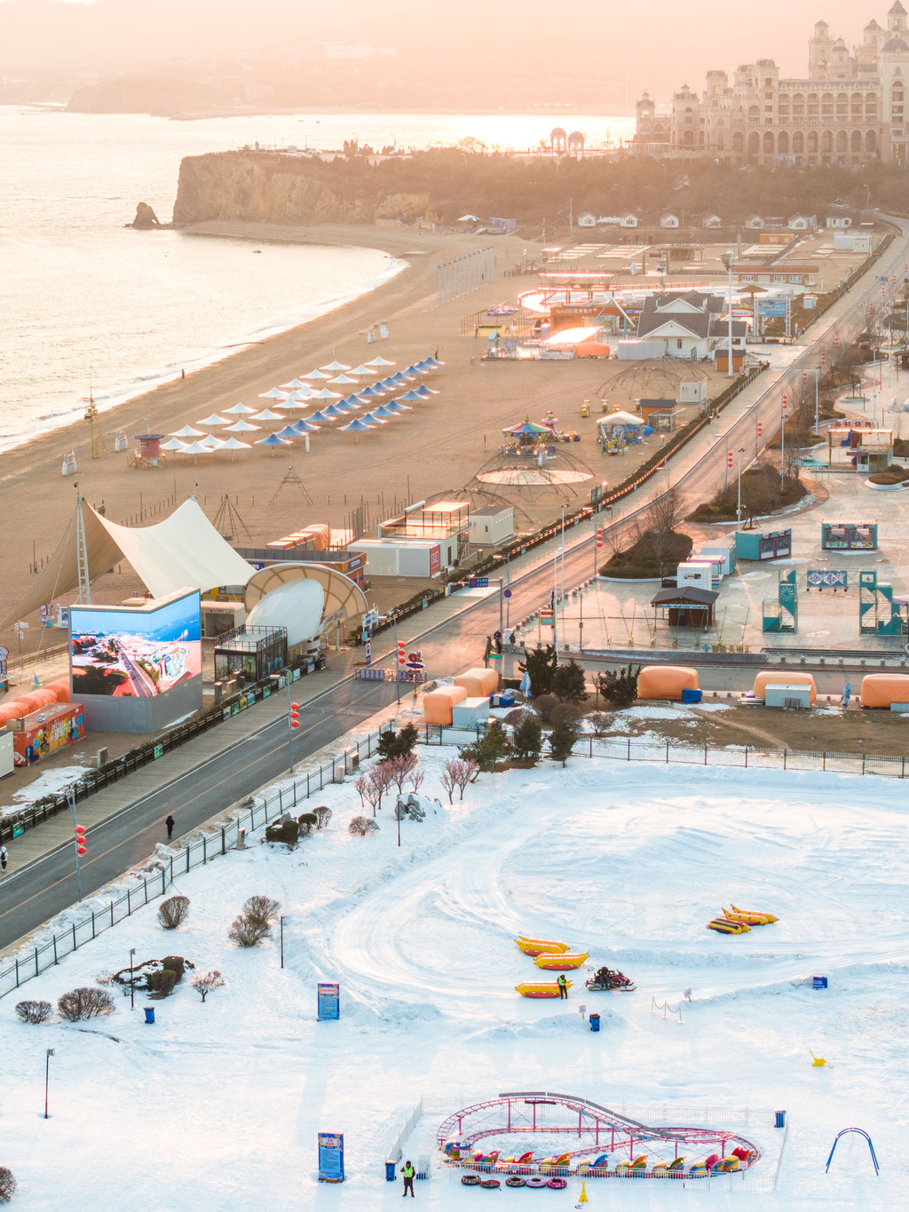 在大连金石滩平地筑起了“限时”版的《快乐雪世界》,限时是因为它在这仅存不足两个月啦!2024年2月29日恢复海滩原有的样子。这里单是火爆东北的滑雪圈就有好几种类型,人少还不排队。雪圈拉起来非常轻松,再加上魔毯助推器,让你在这滑上一天都不累,春节七天还有烟花秀表演哦。