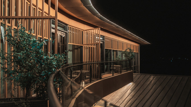 海上日出一家能看日出的酒店。海景温泉大床房和船屋特别推荐,两个房型的温泉池一个在室内,一个在室外。船屋更适合年轻人一年,汤池在阳台上,非常出片儿。酒店大堂在一楼,餐厅不在同一平层,设计成阶梯状延深至二层,下午围炉煮茶也是在这。
