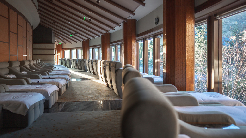 进入酒店大堂那刻你就再也看不到自己的鞋子了,整个酒店都是穿拖鞋的,不同幢的区域都有连廊也不会冷到。房间有自己的私汤,也可以到公共区室内、外都有,还有儿童水上游乐园。泡完可以在休息大厅来个spa,价格亲测也是相当实惠。有单独的泡脚区、汗蒸区环境都老棒了。