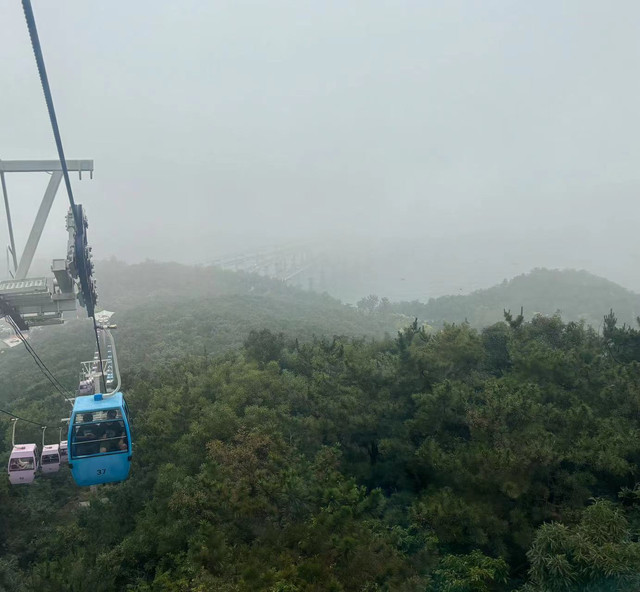 中午:12:09搭乘出租车,12:20到达大连森林动物园——海达索道(辽宁省大连市西岗区滨海路400号海达索道),至山顶莲花台游玩。这里没什么需要描述的,今日有大雾,索道观海观了个寂寞;只能抵达山顶咖啡店买了杯咖啡作为到此一游的打卡纪念了。关于下山,我们选择了山间摆渡车,同样也错过了近距离接触路边散养的梅花鹿……重点来了,摆渡车抵达半山腰后千万不要走错下山的道,不然只能徒步走向北门了。我们需要赶时间就打了山里的出租车,这车真昂贵,不二价20元/人。