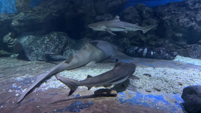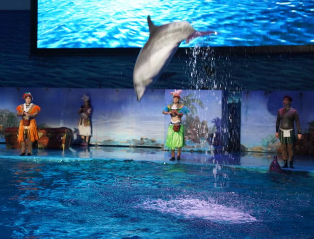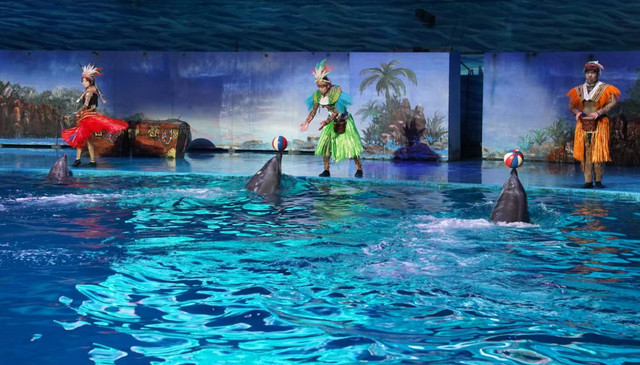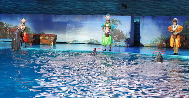 中午:12:30搭乘出租车,12:53到达大连老虎滩海洋公园(辽宁省大连市中山区滨海中路9号),不要搭理门口的黄牛,网上下单不用排队购票直接进园,门票包含珊瑚馆、极地馆、欢乐剧场、海兽馆、鸟语林。极地馆里有白鲸、北极熊、企鹅、鲨鱼等;还有美人鱼表演以及海豚、白鲸极地海洋动物表演。珊瑚馆里有各种珊瑚、热带鱼、水母等。侏罗纪欢乐岛的高空玻璃水滑道也是小朋友喜欢的项目,不过需要另收费。由于延误了行程加之景点攻略没有做充分,完美错过了欢乐剧场的演出,也没来得及前往海兽馆、鸟语林游玩,略有遗憾。但园内的沙滩又成了小朋友的乐趣。另外,高空索道不建议乘坐。