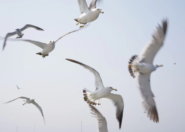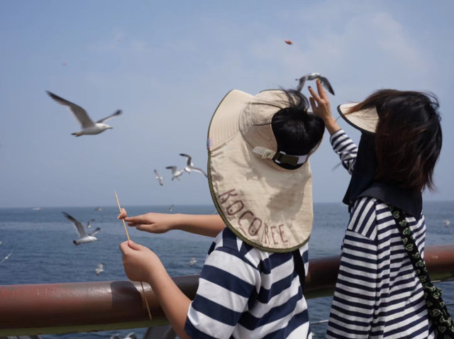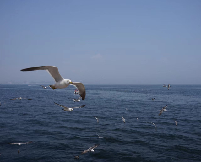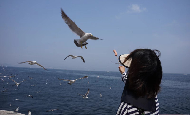 早上:为了体验大连的烟火气,特地定了该酒店无早房间。8:20步行前往七一早市朱哥早餐店(辽宁省大连市中山区三盛街与人民路交叉口北80米),朱哥家的早点价廉物美,油条甚是好吃。10:00搭乘出租车,10:12到达港东五街—网红游轮打卡点,网上有误区:第一,站在打卡点根本看不到马路的尽头是大海;第二,要用焦段超过100mm,最好达到200mm的专业镜头;第三,真的是人挤人拍大邮轮。鄙人直接放弃了,实际邮轮出发时间也延误了。10:31东港游艇码头(辽宁省大连市中山区港浦路与珠荷街交叉口东北150米),这里强调一点东港码头并不是喂海鸥的地方,它是各式各样游艇的停靠处,也是小朋友的游乐场所。东侧沿岸才是海鸥的聚集地,因为大家都在沿岸喂海鸥,成千上万只海鸥一起飞翔的场景还是很壮观的。除了喂海鸥外,租上一辆电动三人车在海边驾驶也是不错的选择。