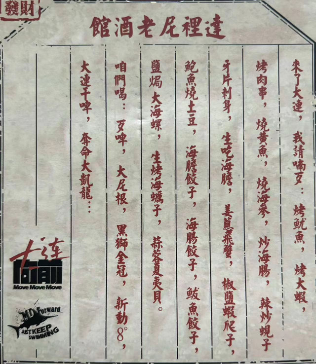 美食:日月昇渔家菜、天天渔港;大连三绝(海胆、海螺、飞蟹)。