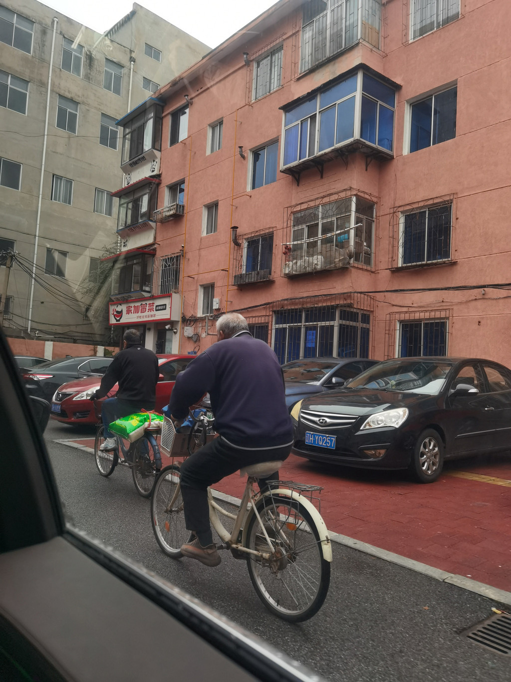 老大爷在前面慢慢骑,我们就慢慢跟着,直到他闪到旁边
