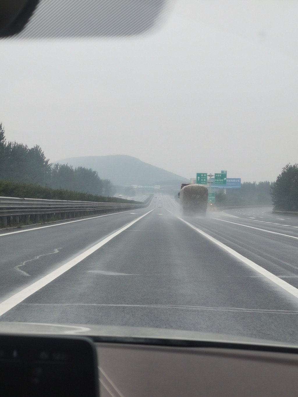吃饱喝足,10点出发去大连,这时候雨停了。导航显示,230公里,需要两小时40分。