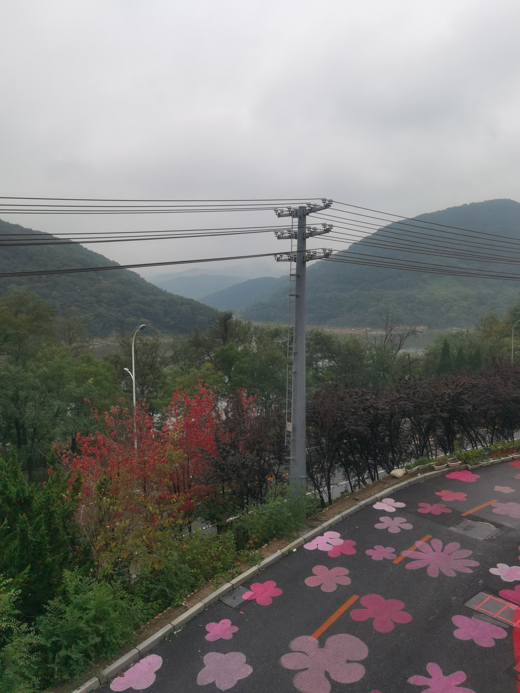 空气超级好。往上走几步,有一个观景亭,可以俯瞰水库和远处的群山。只是天太暗了,明天不管是否下雨,我们都来这个观景亭,好好欣赏山水。