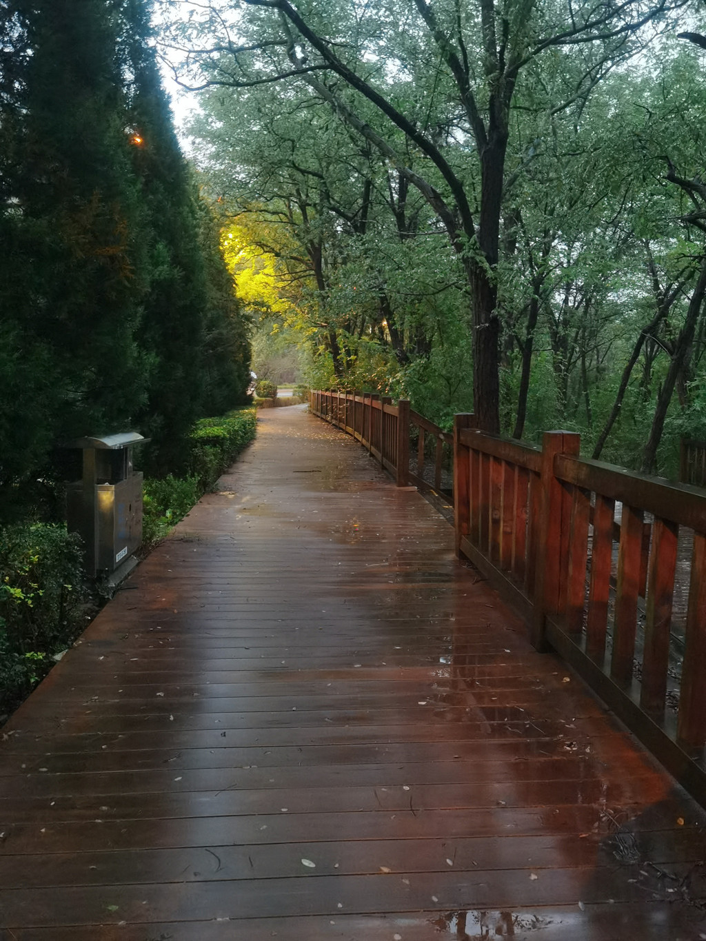 酒店对面是木栈道,沿江而设,中间可以往下走,河边是森林