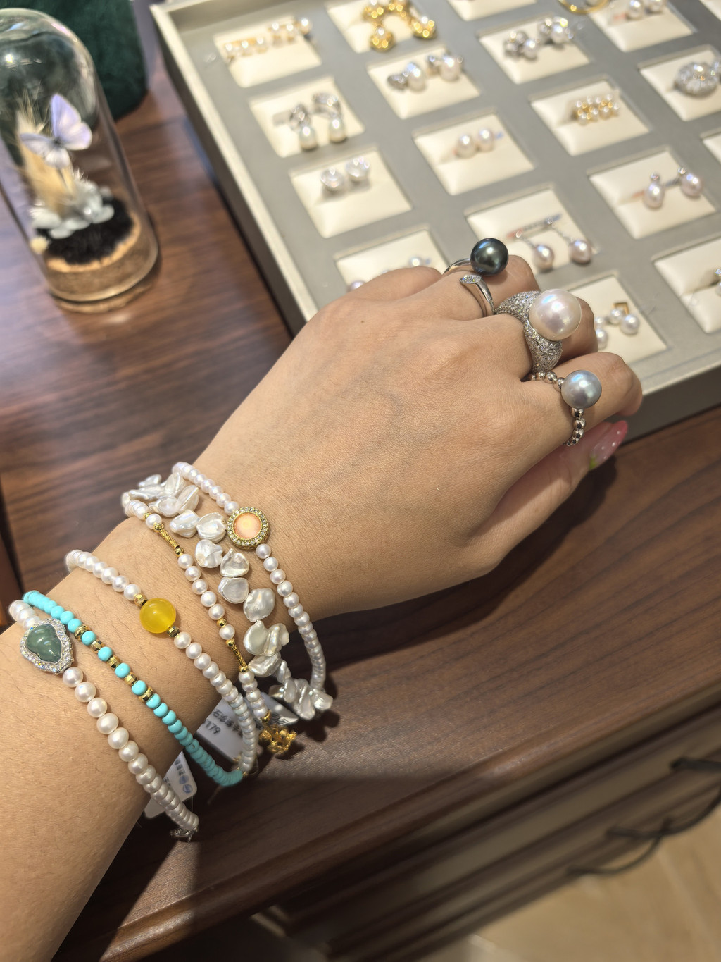 店主是一位穿亚麻长衫的姑娘,正在用放大镜端详一粒爱迪生珍珠。“你别看这是颗淡水珍珠,可品质一点也不比海水的差,这里每一颗都是我用心挑选出来的。”她将珍珠举向天窗,光线穿透珠体时,内部如银河般流转,“我们不做工业化的‘完美珍珠’,只收藏时光的痕迹。”