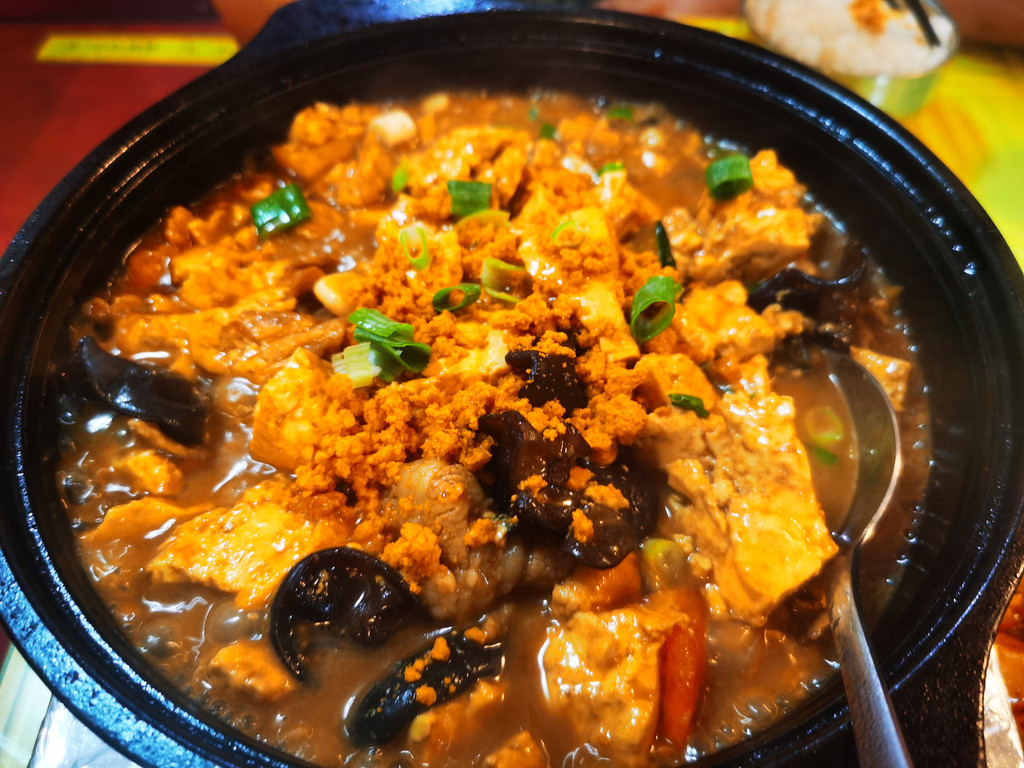 放下行李便迫不及待去寻晚餐,酒店对面的小饭馆看着格外亲切,点了几道本地菜:大酱拌菜、溜肉段、鱼籽豆腐、红烧豆腐(胖子我俩一人点了一个豆腐,因为都想吃自己想吃的味道),一盆海菜汤,结果里面也有豆腐,成了一桌豆腐宴。坐在饭馆里,听邻桌的食客聊着旅顺的故事,窗外的夜色渐浓,雨声渐大,路灯把街道照得温暖又明亮。