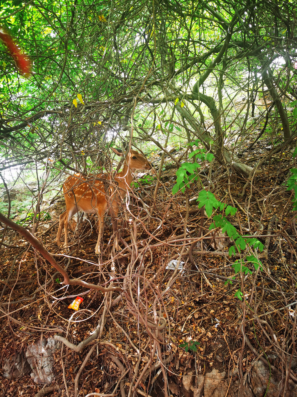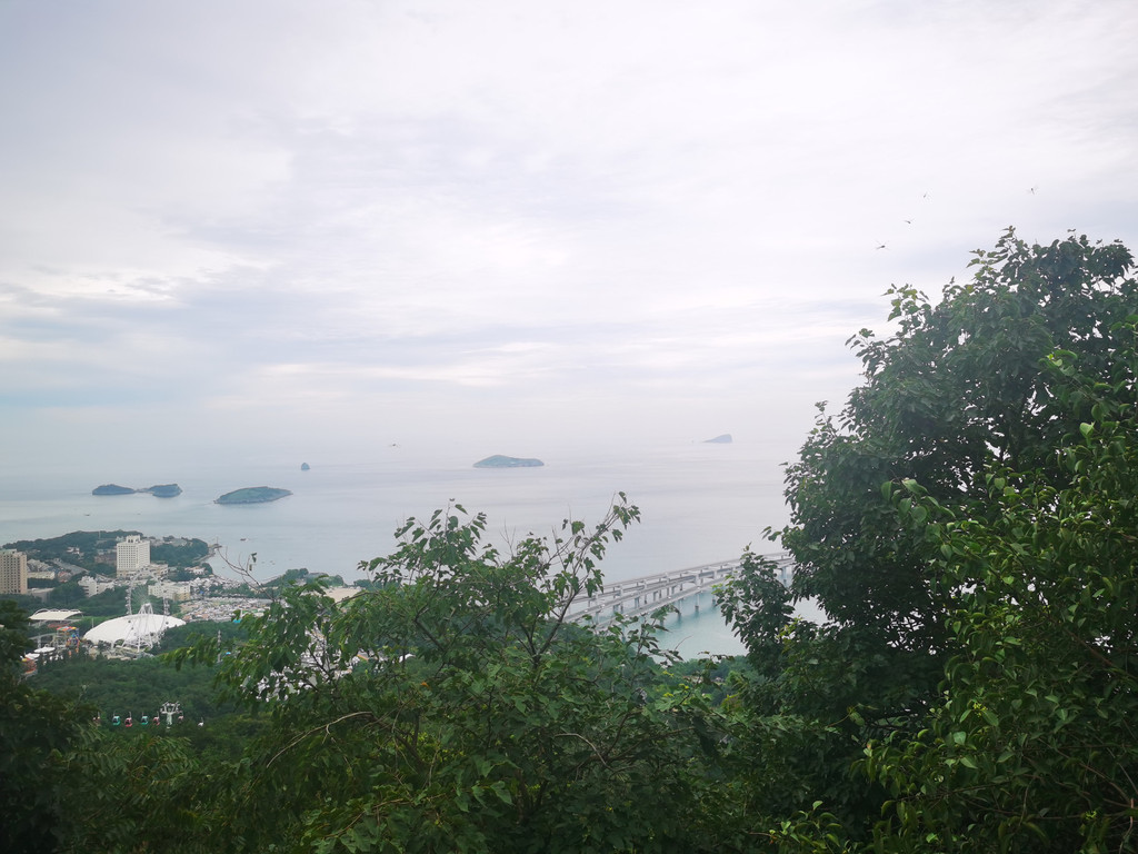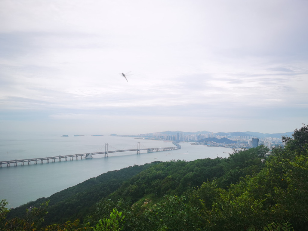 经过车上导游的推荐我们购买了莲花山公园的门票,每人100元。沿着木栈道坐小火车向山顶攀登,沿途的绿植遮天蔽日,阳光透过树叶缝隙洒下斑驳的光影,路边的石凳上有走累的游客在歇脚,听风吹过树叶的沙沙声。登顶时视野瞬间开阔,大连市区的全景铺展在眼前:远处的海岸线曲折绵长,近处的高楼与老建筑错落交织,连星海广场的华表都清晰可见。在山顶的咖啡屋点上一杯冰美式,抿一口清爽的咖啡,再望着眼前的城市风光,旅途的疲惫仿佛都被这开阔的景致消解了。下山走木栈道时还看见了隐在树丛中的小鹿,真是惊喜。