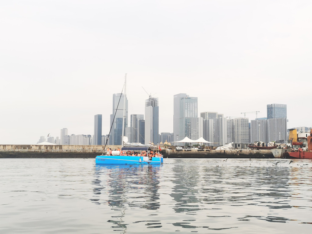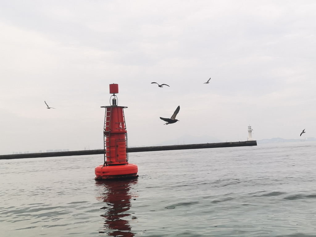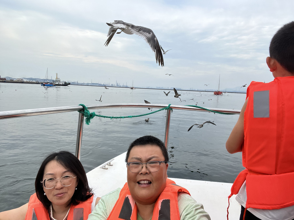 离开莲花山,乘观光车去往导游推荐的老码头帆船基地,门票每人100元。这里的海面停泊着一排排洁白的帆船,海风带着咸湿的气息扑面而来,格外清爽。登上游船,刚驶离码头,成群的海鸥便追着船飞来,它们展开翅膀在海面盘旋,偶尔俯冲下来啄食游客手中的食物。人们握着提前备好的面包屑、火腿肠,轻轻撒向空中,海鸥灵敏地接住,清脆的鸣叫声与海浪声交织,成了最动听的海上乐章。船行至海面中央,回望大连的海岸线,阳光洒在海面上泛着金光,美得让人挪不开眼。