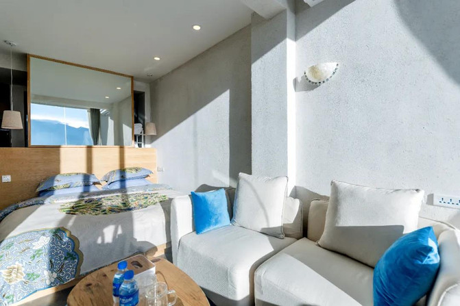 复式结构加上自带观景台使得空间更加开阔,坐在观景台上,放空大脑,听着洱海的低吟,看云卷云舒不停变换。面朝洱海,春暖花开,灵魂仿佛变得轻盈起来,吐纳之间,身心都得到了极大的净化。