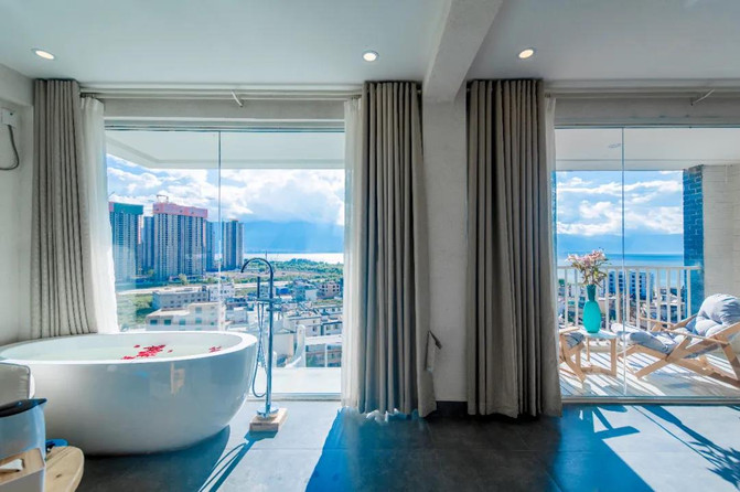 配备超视野观海浴缸,浴缸也颇有“心机”的面朝洱海。夜晚降临,边泡澡边看夜景,让你在疲劳之余放松自己,简直是人生一大享受。