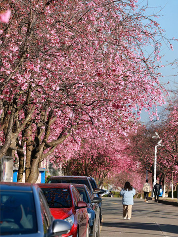“樱花半开琉璃暖,青叶萋萋犹遮面”,春日大理大学的樱花,一片烂漫的粉色,如云似霞,像烟雾般浓郁的樱花喷薄而出,校园上空被染成一片绯红。