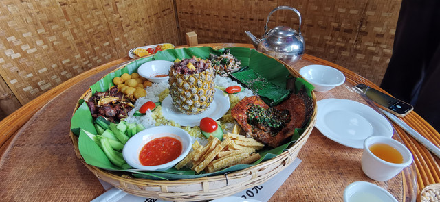 酒店旁边有一家评价最高的傣餐餐馆,这个傣餐108元/套,味道不错,挺值的。