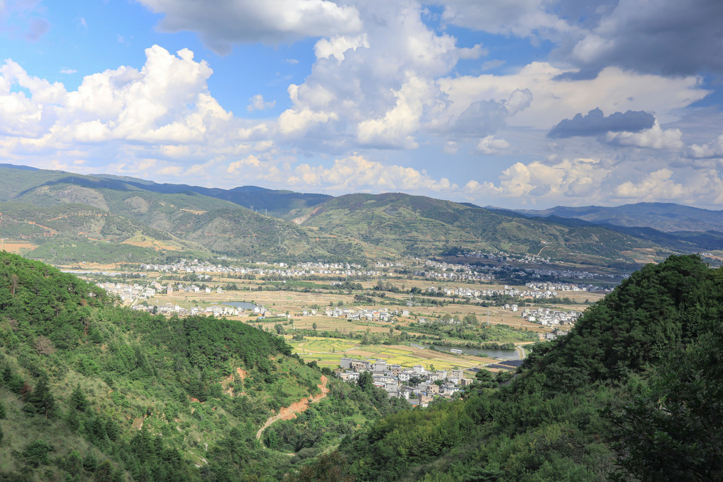 进入大理市前爬的这座山,终于有机会停车到观景台看看下面震撼的乡镇民居。