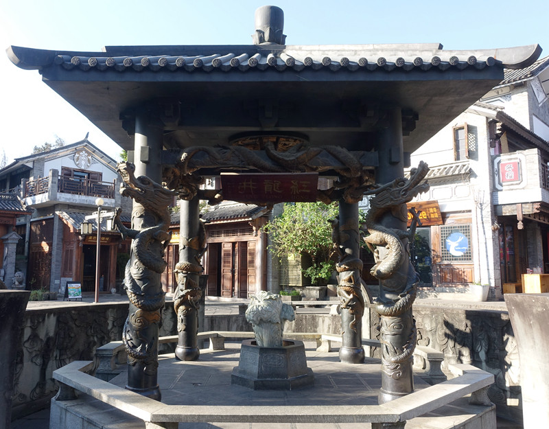 红龙井水景街,全长408米,地处大理古城的核心地带,景观主体自西向东,以博爱路为界分为上下两段,是以井的名称来命名的街道。