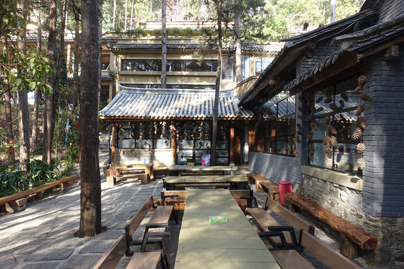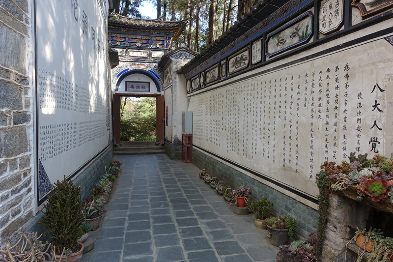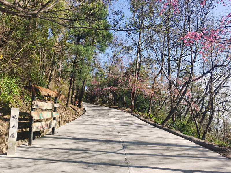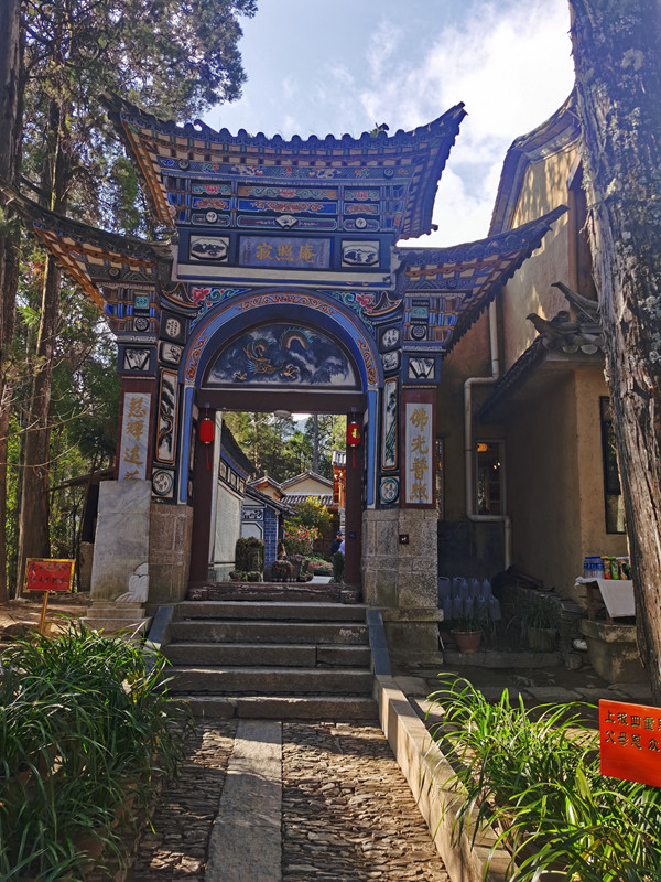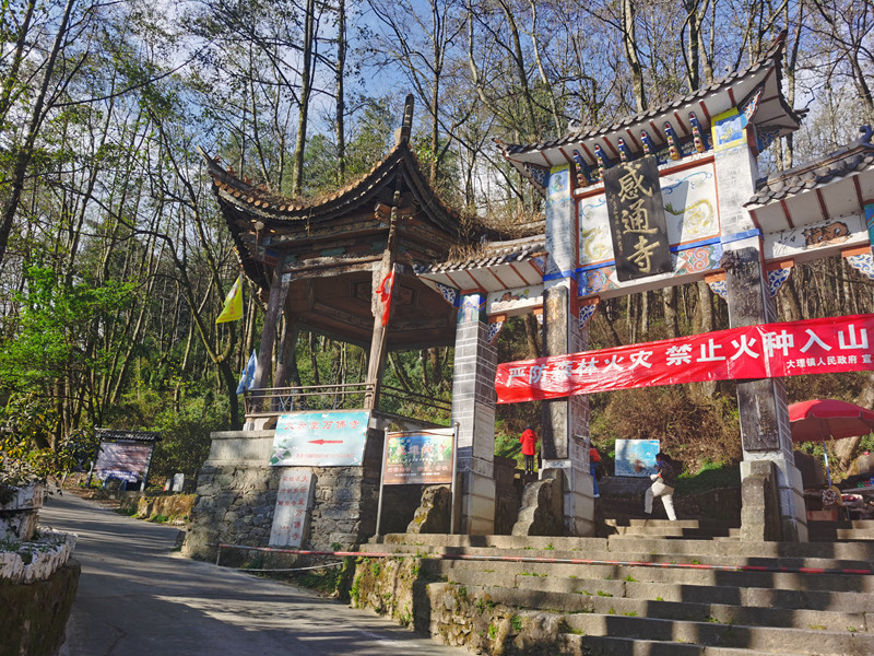 过苍山感通索道站不远,到感通寺山门,这里有两条路去寂照庵,右边台阶路上去10分钟路程,但会比较累。左边上坡路20分钟路程,但比较省力。我们走左边。