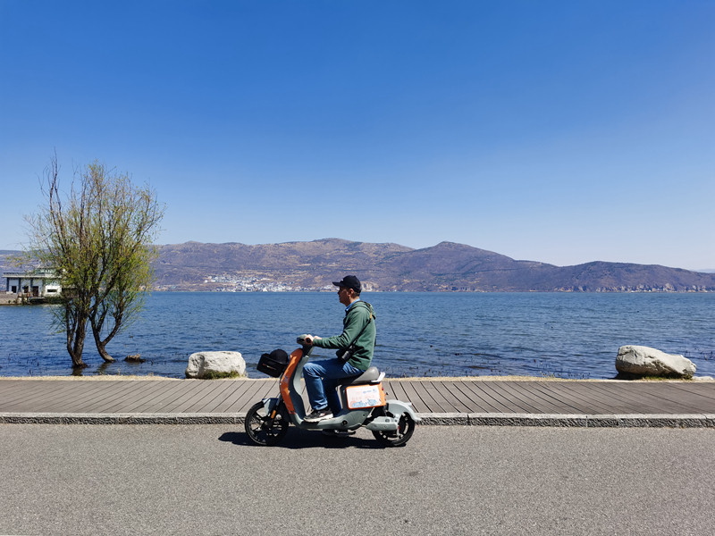 一路上一边是洱海,一边是苍山,途中可以随意停下锁车拍照,湛蓝的晴空下,尽情地放飞自我吧~~