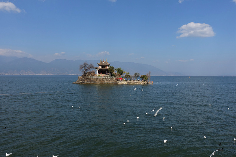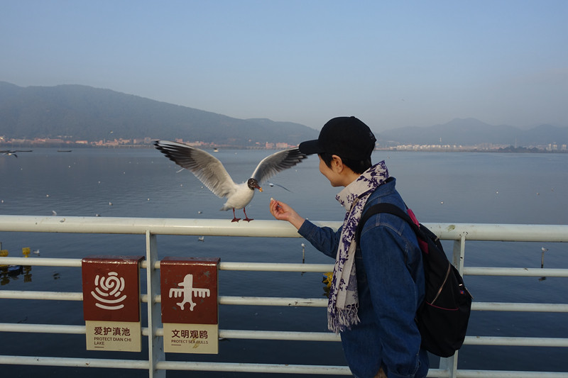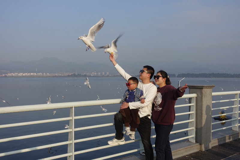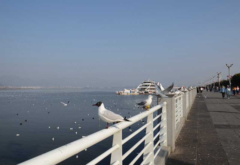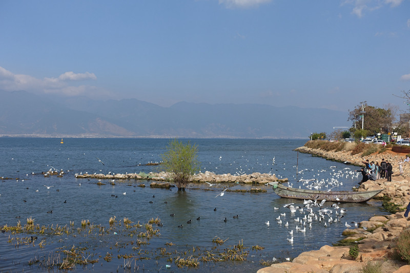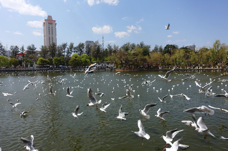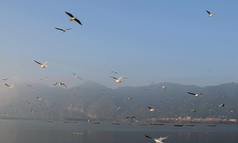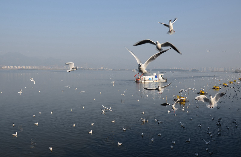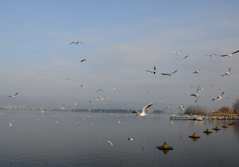 每年11月中旬到次年3月中旬,滇池总会聚集成千上万只从西伯利亚来此过冬的红嘴鸥,在湖面上翻飞的红嘴鸥成为滇池一大景观。