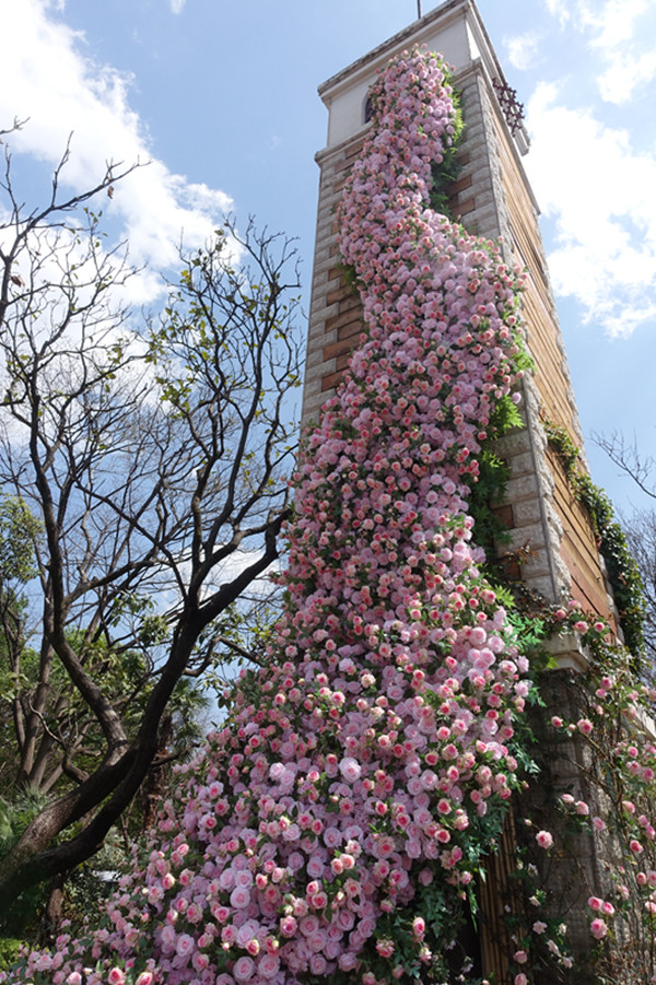 这可是全部用鲜花打造出来的景色哦,下面全部是拍照打卡的妹妹,只能对着天空来一张咯~~