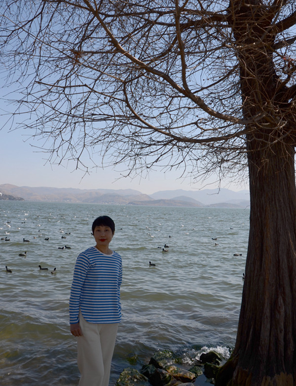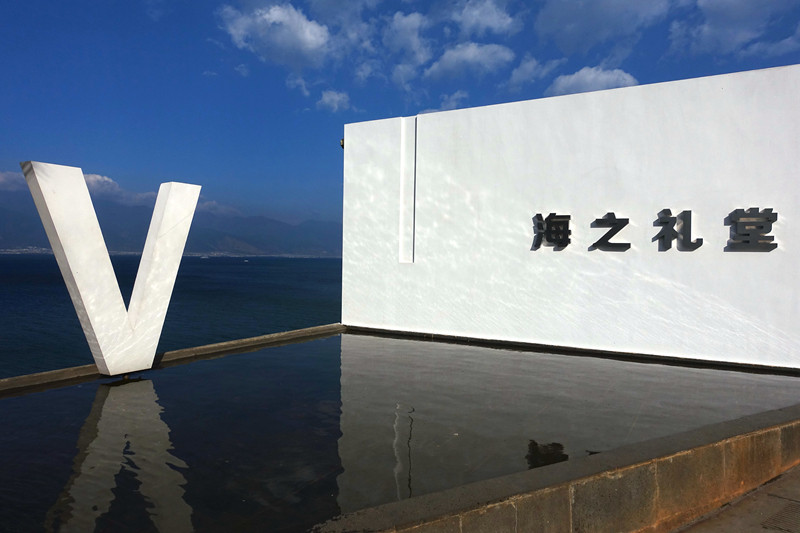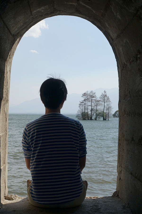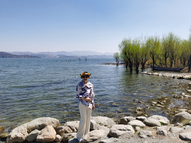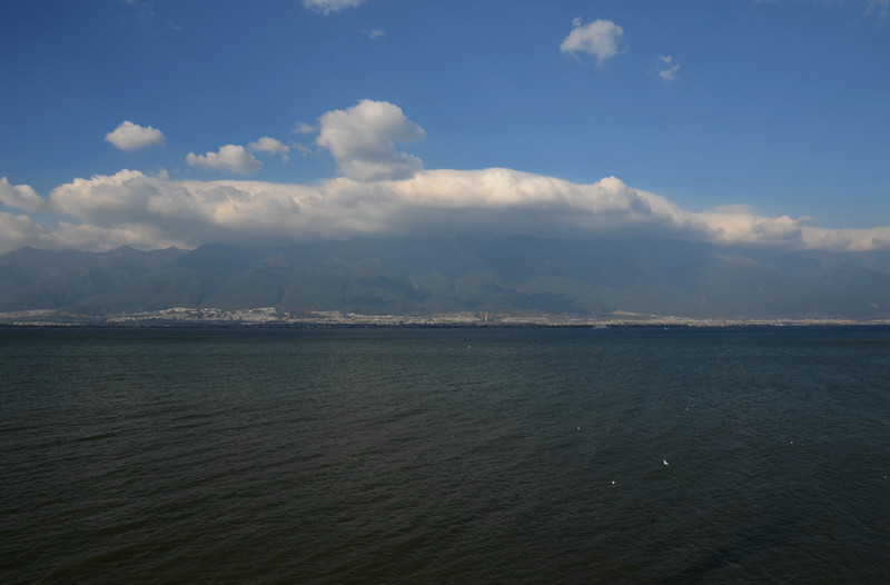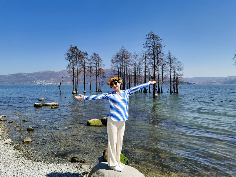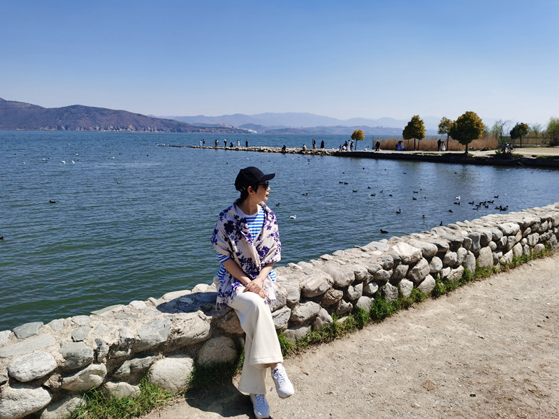 边上人少点,面对洱海来一张,哈哈碧蓝的湖水真有海的意境啊!