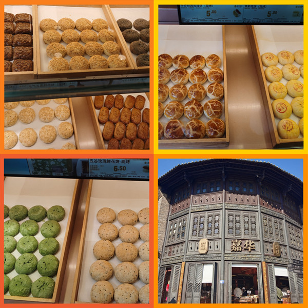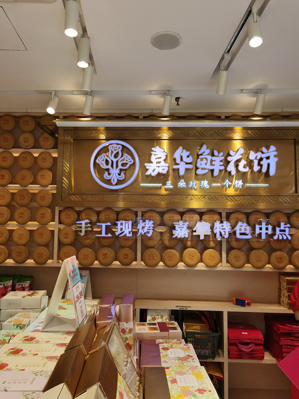 老街上一共有两个嘉华鲜花饼商铺,里面都有店铺里当天现烤的鲜花饼,添加剂少保质期只有7天,买了10个品种都尝了尝,其中经典玫瑰、云腿小饼、玫瑰洗沙大饼确实都很好吃不会踩雷,现烤的工艺比那种盒装保质期30天的好吃多了。另外潘祥记鲜花饼的店铺也有几个。