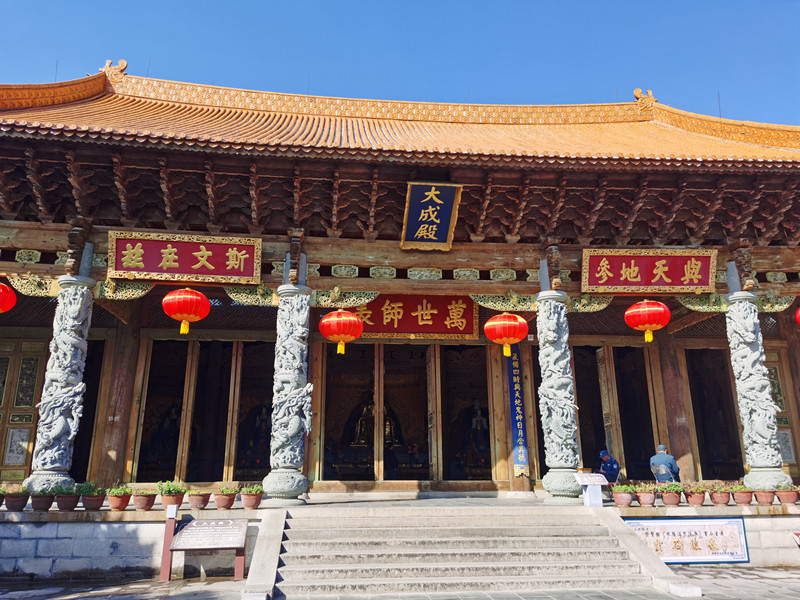 游玩整个景区徒步往返要3小时左右,我们先乘观光车到景区最上面大雄宝殿,再徒步往回走,这样会比较省力。
