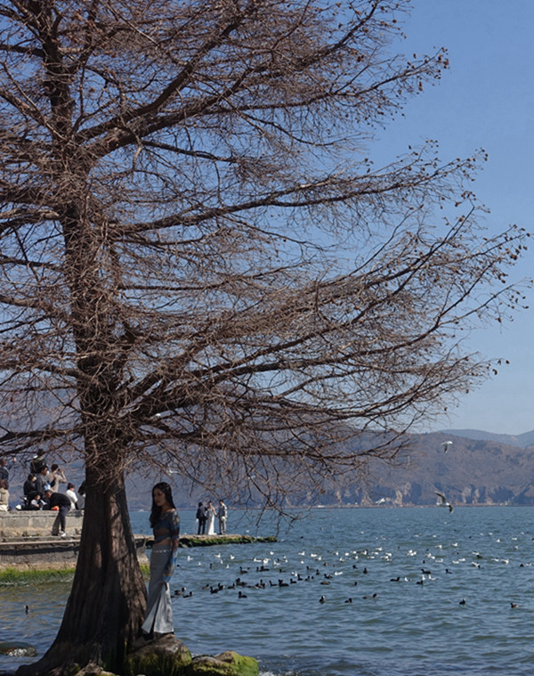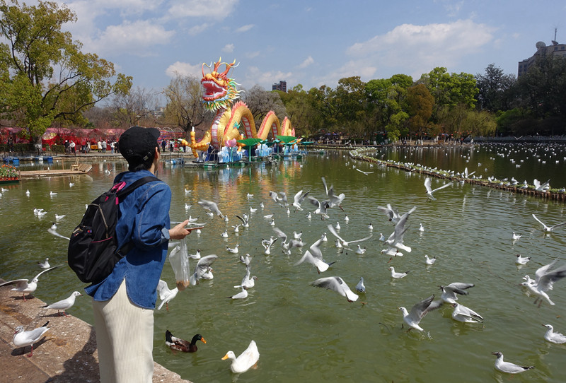 湖边定点投喂点的老人一呼唤, 红嘴鸥会立马欢呼雀跃起来,“翠湖观鸥”已成为昆明最热门的景观之一。