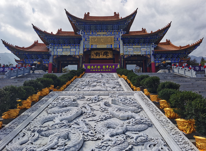 金马碧鸡坊位于昆明市中心三市街与金碧路交汇处,高12米,宽18米,雕梁画栋精美绝伦,东坊临金马山而名为金马坊,西坊靠碧鸡山而名为碧鸡坊。一关在东一 关西 ,不见金马见碧鸡。相思面对三十里,碧鸡啼时金马嘶。金马、碧鸡二坊曾是昆明城内人文景观和城市的标志。
