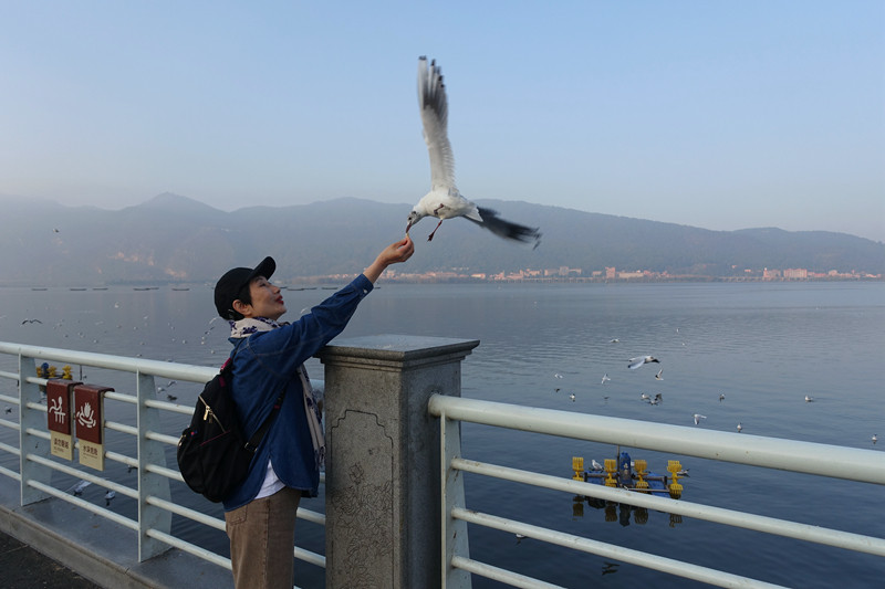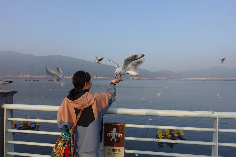 龙龛码头观赏日出绝佳地点,这里视野开阔,每天早晨有很多游客到此看日出。这里也是洱海投喂海鸥的地方之一。这里景色宜人,非常有海的意境,妹妹们都打扮得花枝招展,尽情地拍照留念。