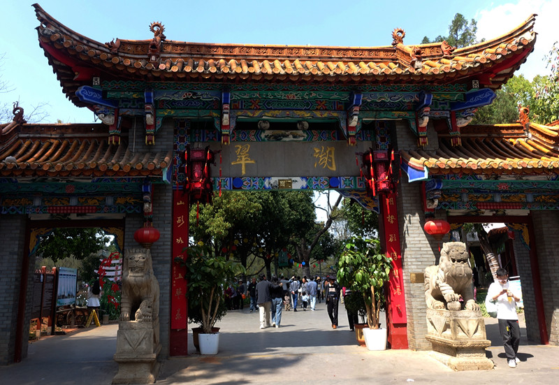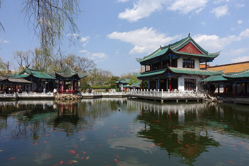 翠湖公园位于昆明市区的螺峰山下,云南大学正门对面,免费开放。虽然面积不算太大,但却很有特色。这里最初曾是滇池中的一个湖湾,后来因水位下降而成为一汪清湖。 自明朝起的历任云南行政官员都曾在这里修亭建楼。由于垂柳和碧水构成其主要特色的缘故,本世纪初正式定名为翠湖,它以“翠堤春晓”而闻名四方。人们称之为“镶嵌在昆明城里的一颗绿宝石”。