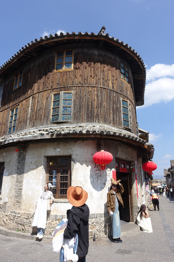喜洲转角楼,网红打卡点。原为村民杨如轩的旧宅,建于1945年,遵循了白族建筑风格的传统,又受到西方建筑结构的影响,外圆内方的民族院落是喜洲古镇民居建筑中结构造型最为独特的历史建筑。
