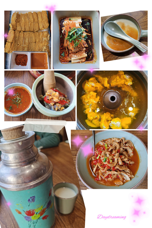 汽锅鸡首推真心很不错,原汁原味蒸出来的鸡汤很鲜美,招牌糟辣子炒肉筋酸辣口感肉不柴,吴家营豌豆粉,本地青椒擂茄子和甜品都不错,还送了豆浆。