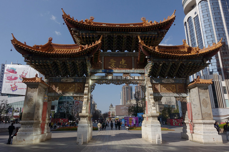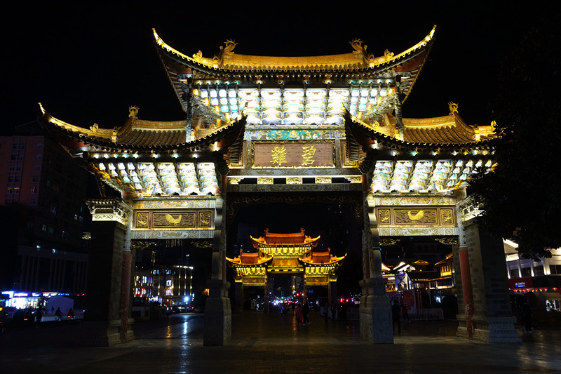因为在正义路和南坪步行街路口的昆百大新天地吃的晚饭,吃好晚饭沿三市街走不远就到金马碧鸡坊。