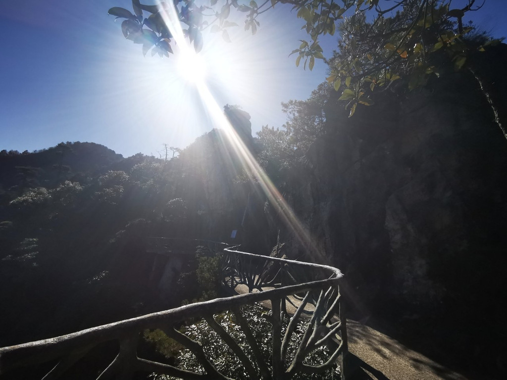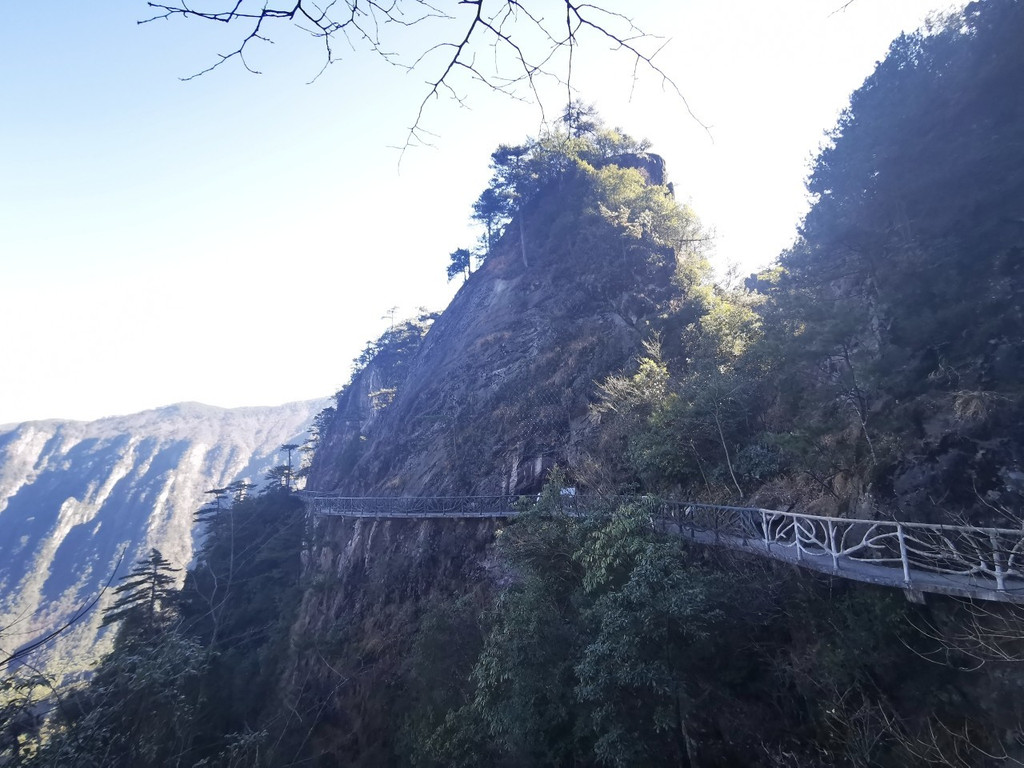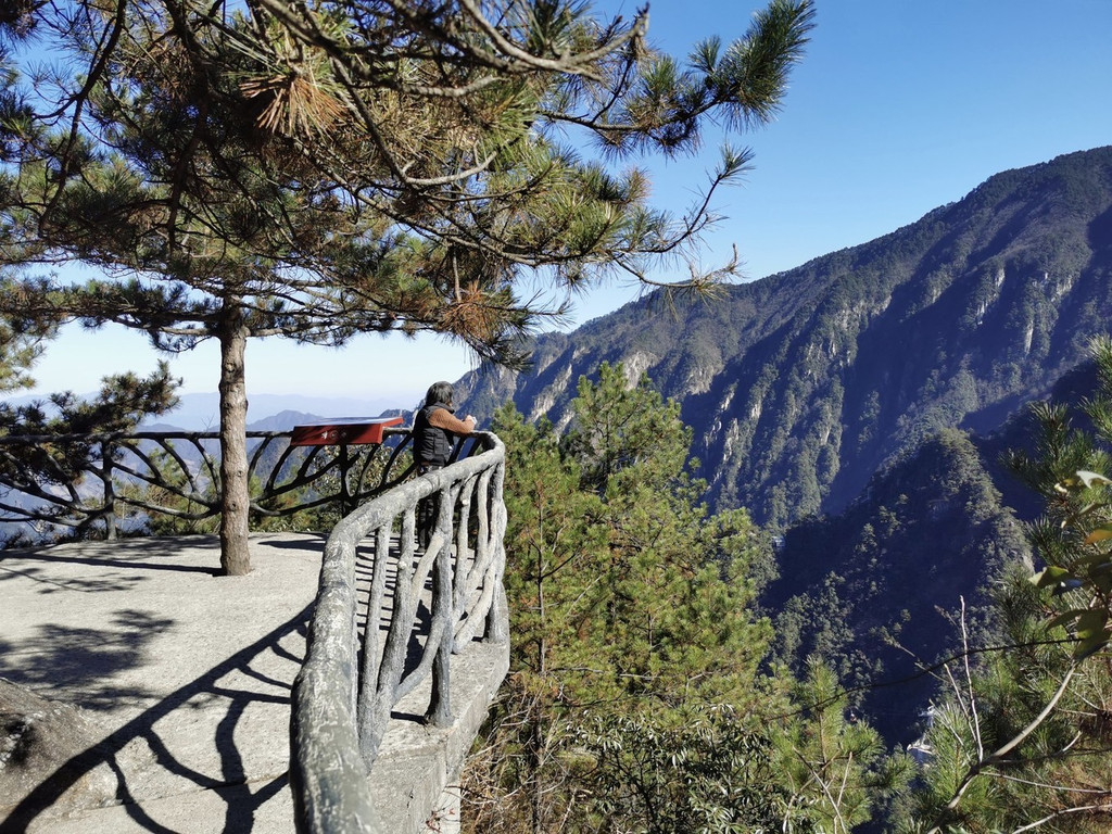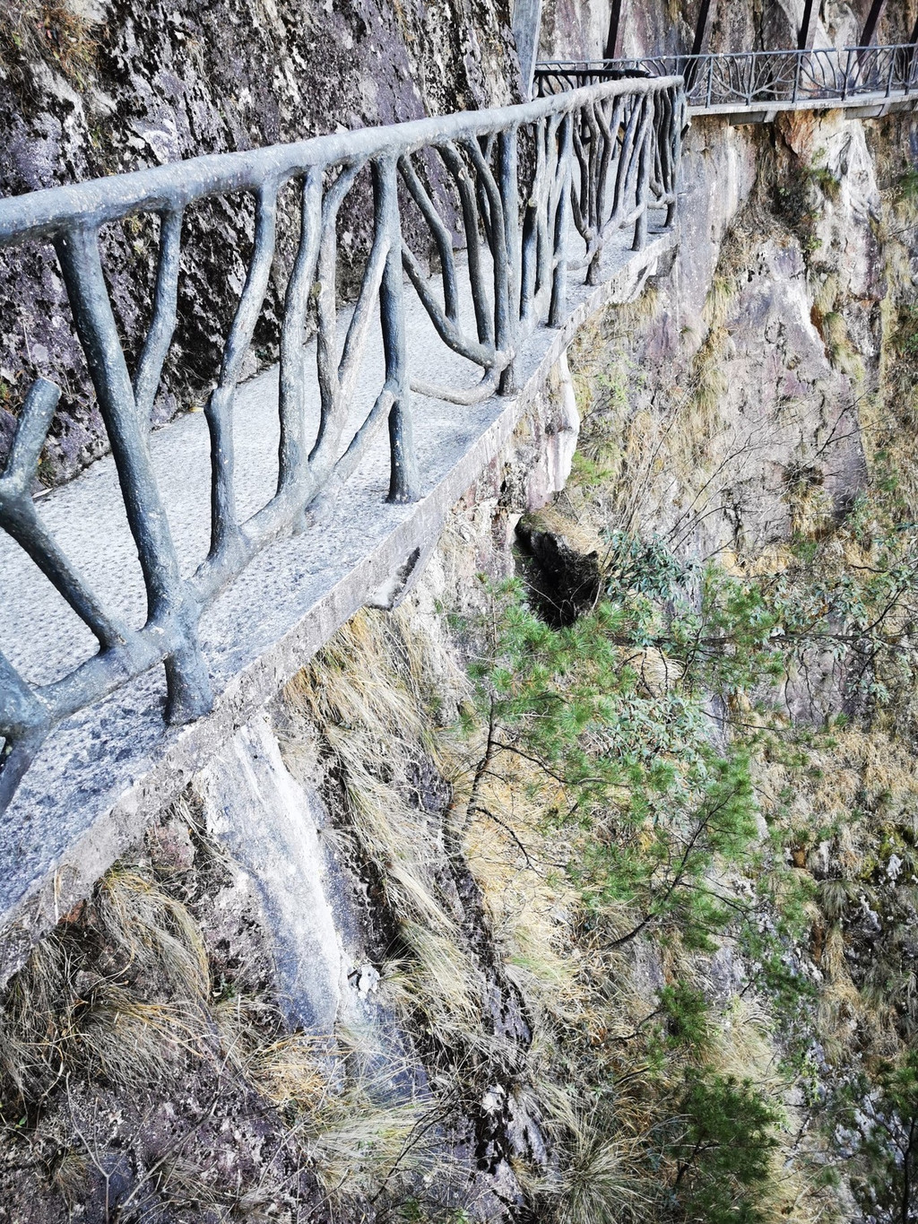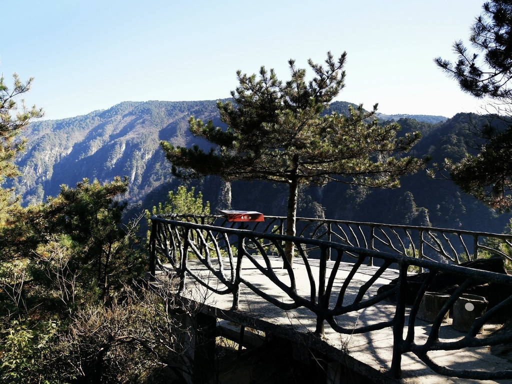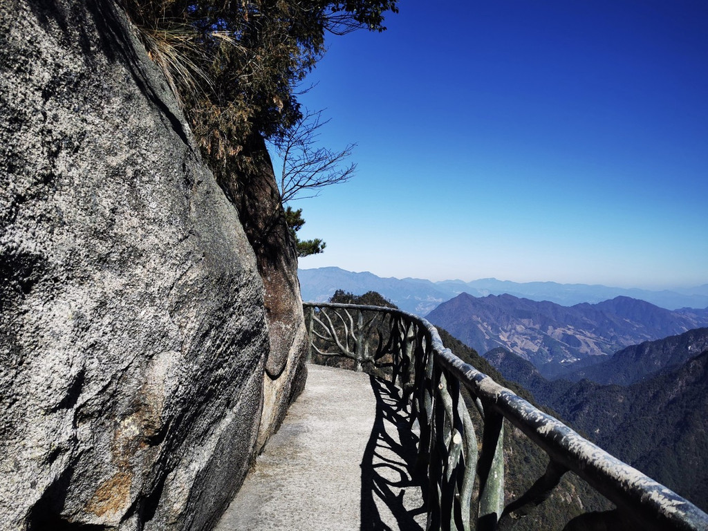悬空栈道修建蛮长的,都建在山腰之上,工程也相当不容易,走在悬空栈道,阳光透过松树丛中,午后特别惬意的游玩路线。