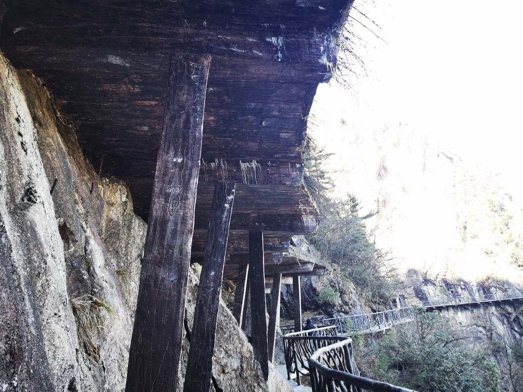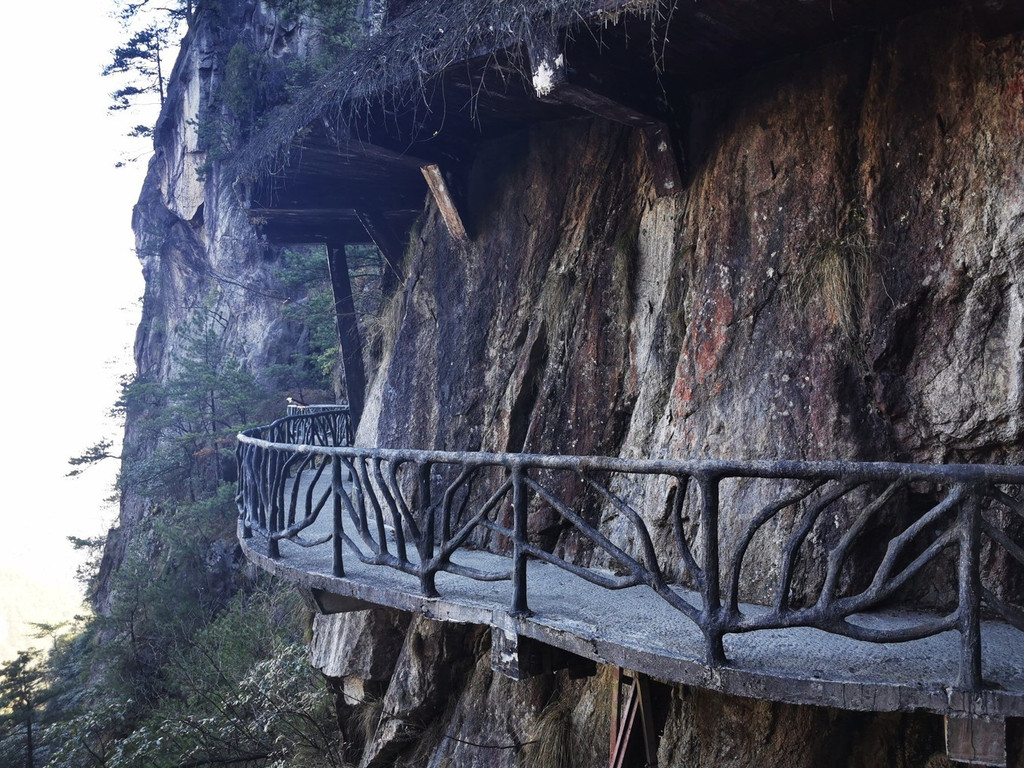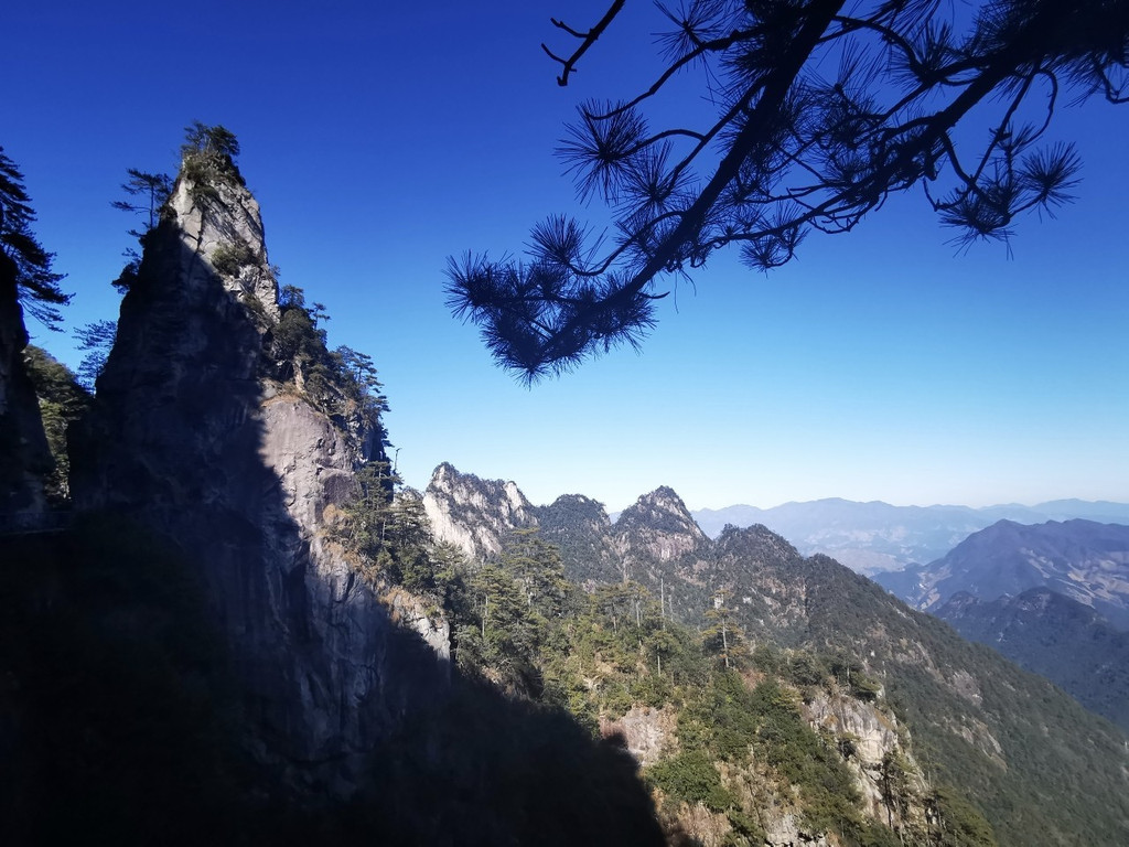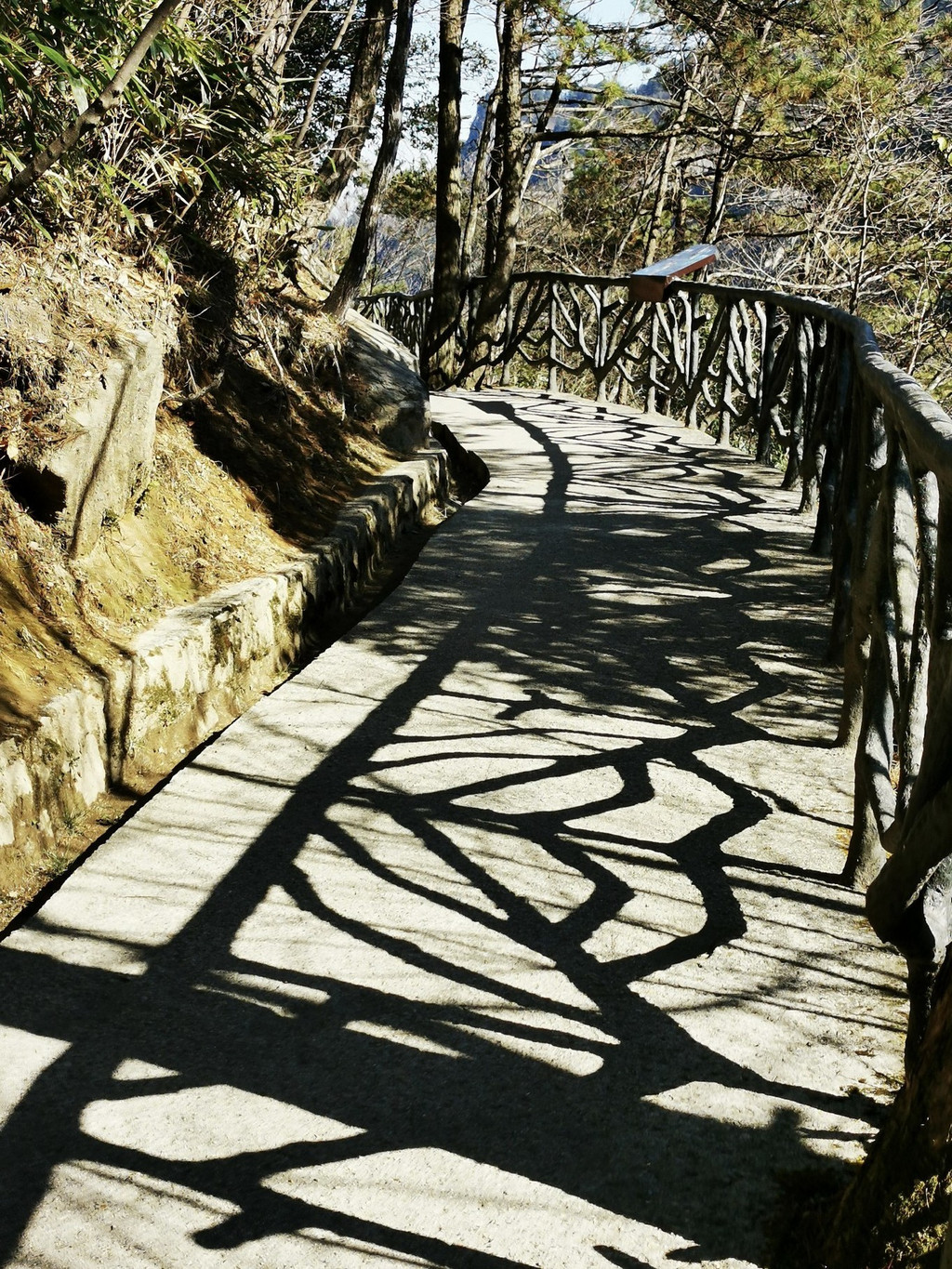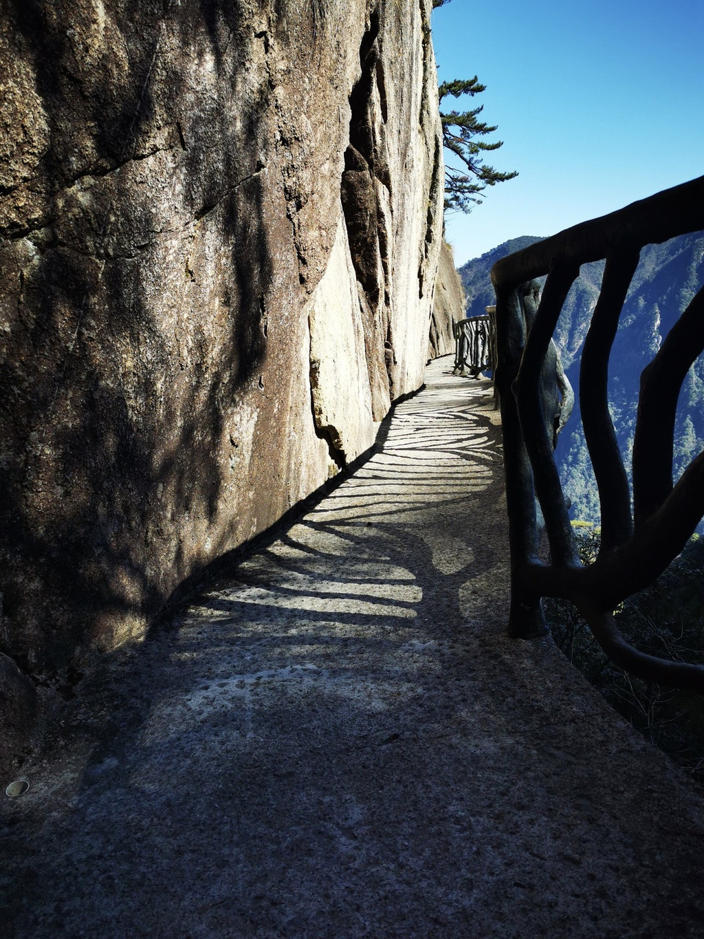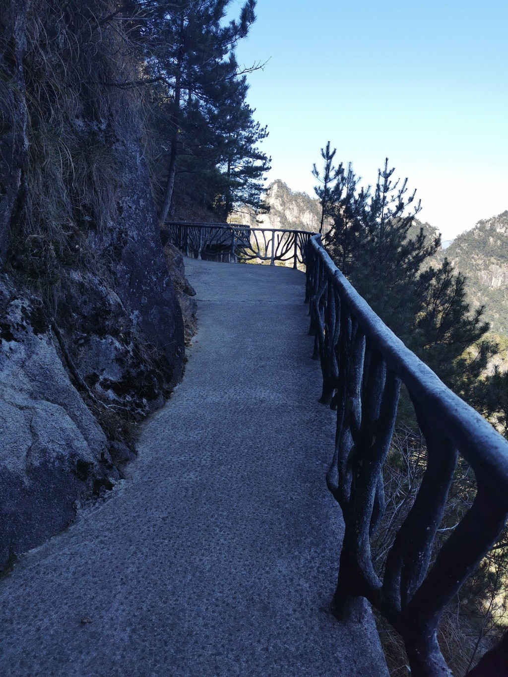 悬空栈道修建蛮长的,都建在山腰之上,工程也相当不容易,走在悬空栈道,阳光透过松树丛中,午后特别惬意的游玩路线。