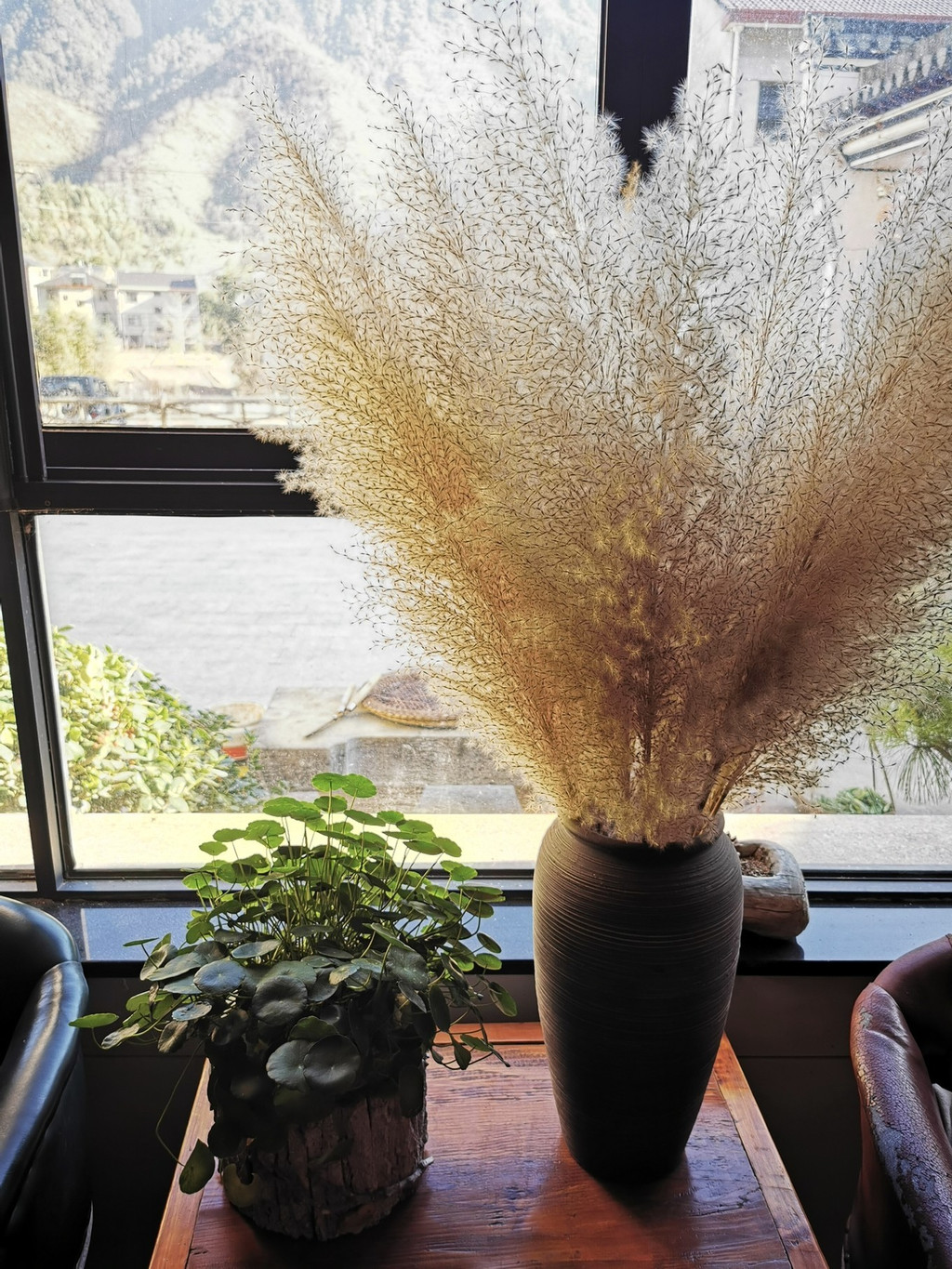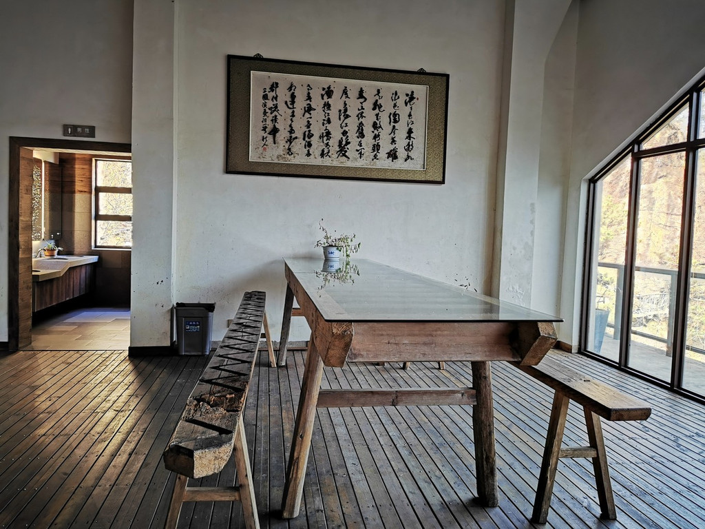 大明山的卫生间修造的非常的豪华,有一个山上的可以说是五星级,搞得像艺术吧一样的,还有一张大桌子可以休息的地方,有不少艺术展品在展览。