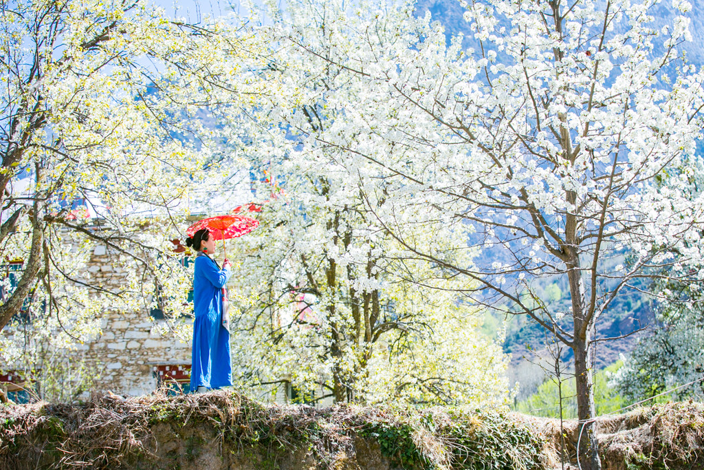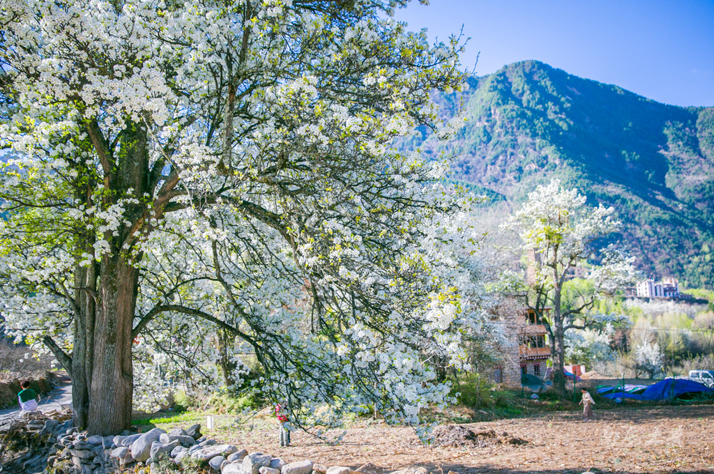 梨花盛开的季节,纷飞的梨花似飘扬的飞雪,将一座座藏寨淹没,仿佛居住在梦幻里。若是到了秋天,树上挂满沉甸甸的石榴、梨、苹果,整个寨子一片瓜果飘香,该是多么美妙。