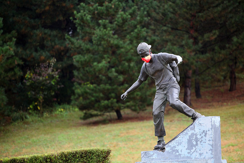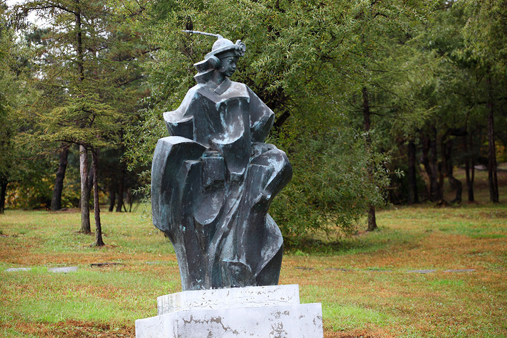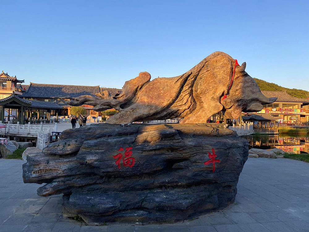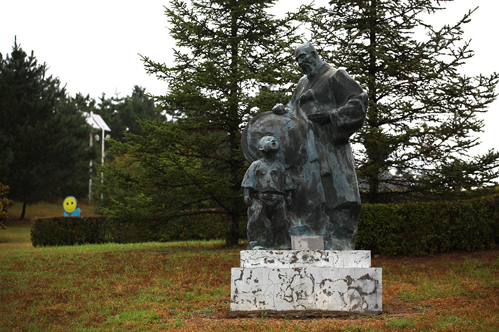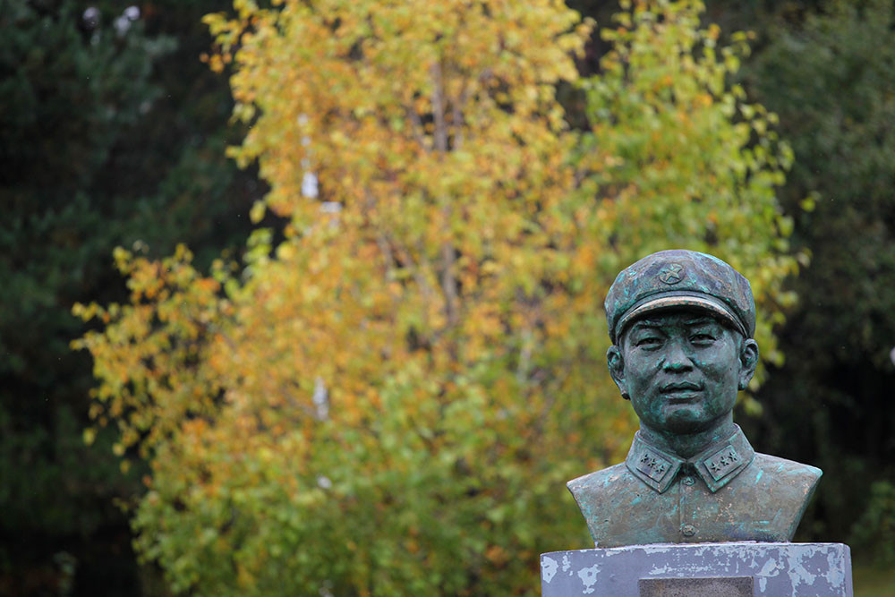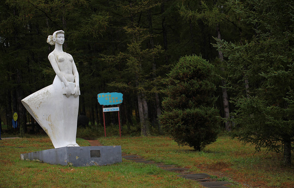 背后就是日光山,那里是居高临下观看朝鲜的最佳地点。开车上到景区的停车场,山坡上是一座雕塑公园,用长焦拉过来几张,算是没有白来。