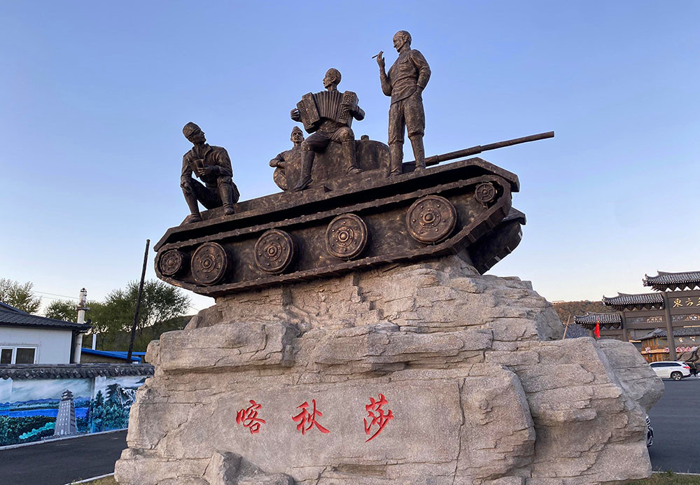 村口竖立着一个喀秋莎雕塑,我百思不得其解,后经查实得知:1938年7月,日方在中苏边境的张鼓峰挑起了战役,战役历时13天,以双方签订停战协议而结束。战役期间,苏联拍摄了大量纪录影片和照片,著名诗人伊萨可夫斯基据此写出了脍炙人口的诗歌“喀秋莎”,苏联作曲家勃兰切尔把它谱成了歌曲,在卫国战争中广为流行,甚至风靡我国。这里是“喀秋莎”的诞生地,竖立这样一座雕塑也就顺理成章了。