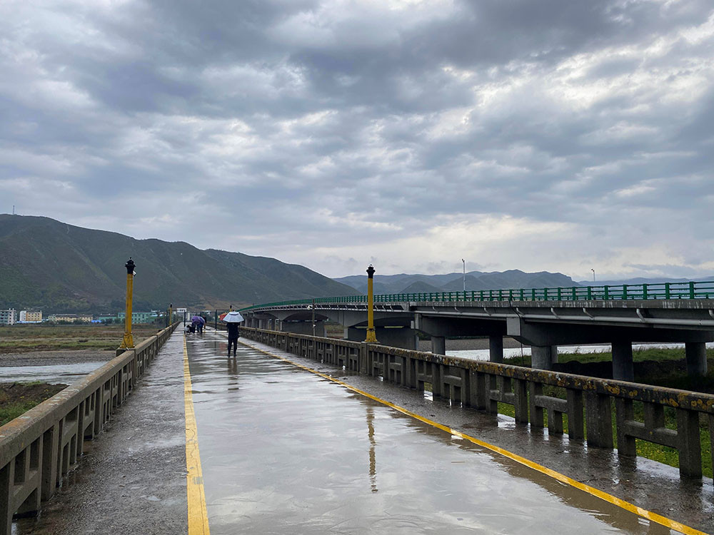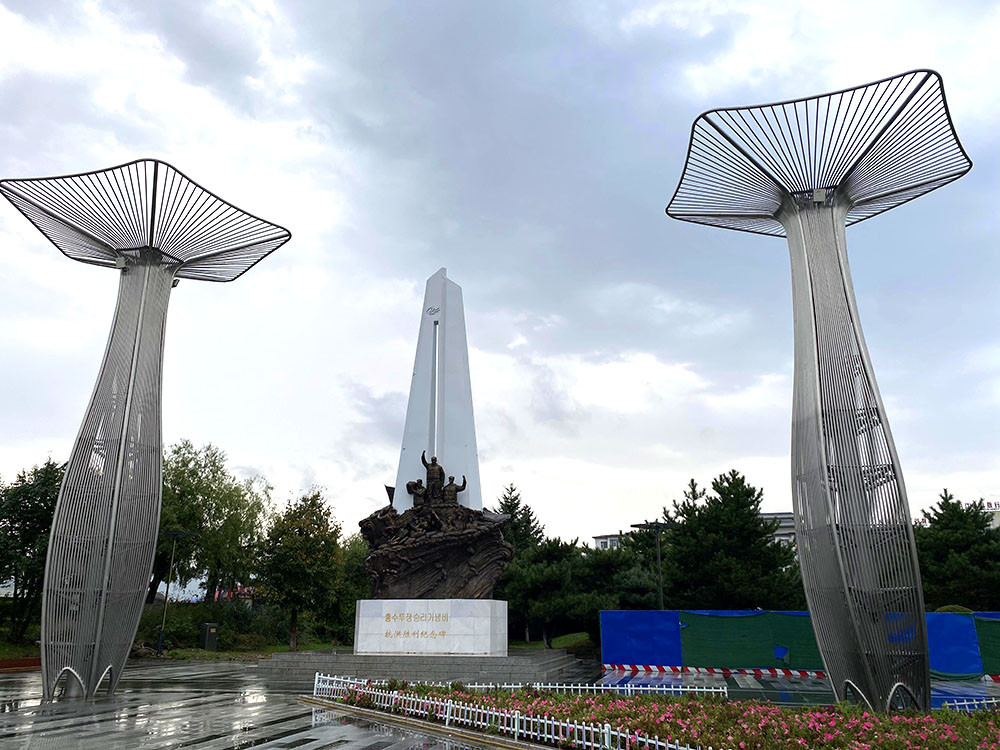 饭后出发去图们市,两地相距74公里,不过一个小时的路程。早上还是多云的样子,路上就下起雨来,雨越下越大,及至到了图们市的国门景区,又变成细细的雨丝,看来老天爷也眷顾我们。