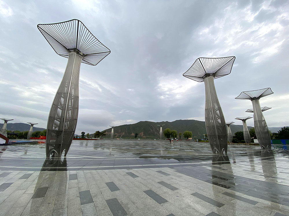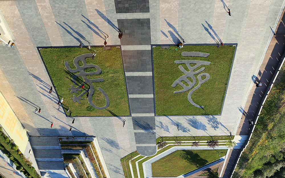 脚下广场上的花坛里有两个醒目的篆体汉字,一个是“龙”,一个是“虎”,,据说当年吴大澄与沙俄谈判时,虽然国弱式微,依然用龙湖之气鼓励自己,最终赢得谈判。